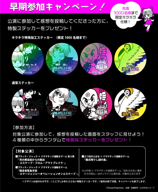 手塚治虫の名作『ブラック・ジャック』、よだかのレコードの謎解きブランド「ドラマチック謎解きゲーム」とのコラボレーション謎解きイベントです。