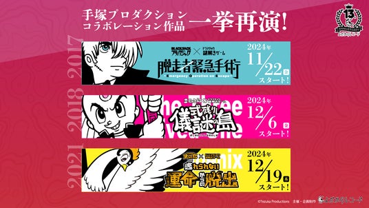 さらに本イベントに先駆け、過去に開催されたブラック・ジャック第1弾や、ファン待望の「三つ目がとおる」「火の鳥」もリバイバル(再演)として3作品が復活いたします。手塚治虫の世界観を味わい尽くす絶好のチャンスを、どうぞお見逃しなく。