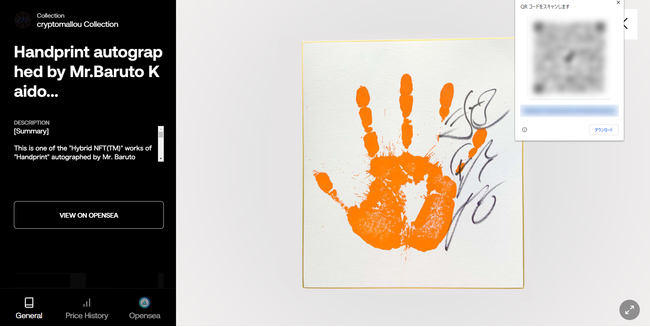 上記2.(3)(ア)(a)で発行される「QRコード」と、上記2.(3)(ア)(b)に貼付された「鑑定証明チップ(R)」の双方を、「鑑定証明システム(R)」アプリで認証して初めて当該「サイン色紙」の真贋鑑定が可能(特許取得NFTマルチシグ認証活用)。