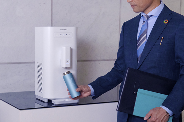 水道直結ウォーターサーバー「ウォータースタンド」は、ボトル不要でいつでもおいしい飲料水が使える利便性の高さと、運搬や使い捨て容器を必要としないエコな給水システムが支持され、子育て世帯を中心とした個人宅や、SDGs達成に取り組む法人、大学などに支持されています。