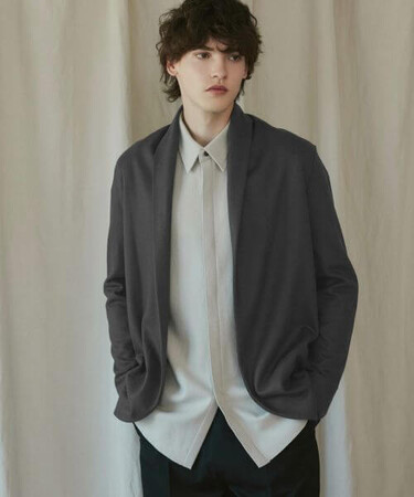 綿密に計算されたパターンとシルエットで、ジャケットやカーディガンとしても使えるのはもちろん、コートのインナーに使用した際には、上質なストールをかけている様な大人な雰囲気を演出します。