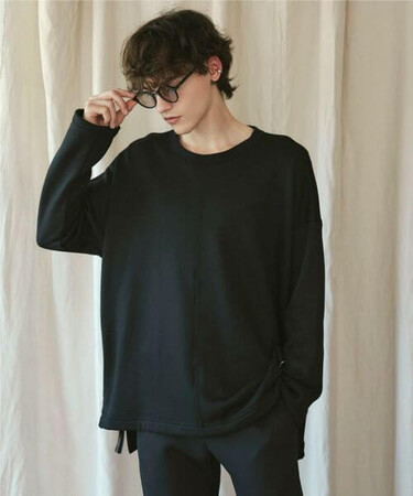 デザイナーコメント: 前後差のあるサイドスリットが特徴的なプルオーバースウェット。