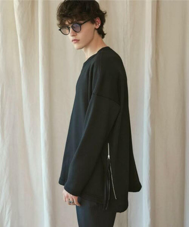 デザイナーコメント: 脇のファスナー付きスリットが特徴のプルオーバースウェット。
