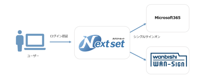 利用者は、「ネクストセット・シングルサインオン for Microsoft365」にログインすることで、「WAN-Sign」にシングルサインオンできるため、ID・パスワードの個別管理の手間を軽減することができます。