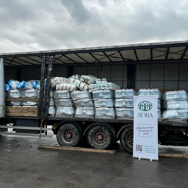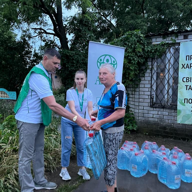 国際NGO ADRA〔アドラ、本部:アメリカメリーランド州/日本支部(アドラ・ジャパン):東京都渋谷区神宮前1-11-1〕はウクライナ支部を中心に周辺国にある支部と連携して、ダム決壊により被災された住民の方々に飲料水を届けています。