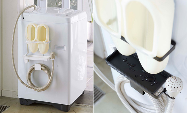 【トレー付き洗濯機横マグネットバスブーツ&ホースホルダー タワー】
