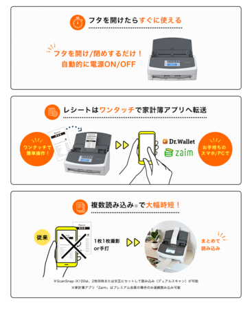 注2:ScanSnapに家計簿アプリは添付されていません。別途家計簿アプリをダウンロードする必要があります。
