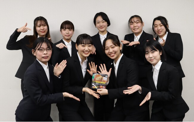同志社女子大学食物栄養科学科食物科学専攻では、2021年4月に「食品開発プロジェクト」を開設し、学修した知識の社会での実践の場として活動しています。当社は、学生の皆さんに商品の企画から生産、発売までの開発過程の面白さを感じていただき、商品化の達成感を味わってほしいという思いから、昨年度に引き続き同プロジェクトに参加いたしました。今年度は『女子大生が食べたくなるハンバーグ』をテーマとして提示し、同プロジェクトの参加学生と共に味付けやパッケージデザイン、販売促進方法などを検討し、商品化に至りました。