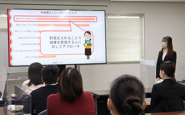 参加学生から当社社員に向けて、完成した商品の