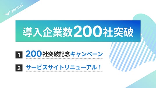 Onebox株式会社(本社: 東京都港区、代表:奥村 恒太、以下「当社」)が提供するメール共有・問い合わせ管理システム「yaritori(ヤリトリ)」の導入企業数が200社を突破しました。