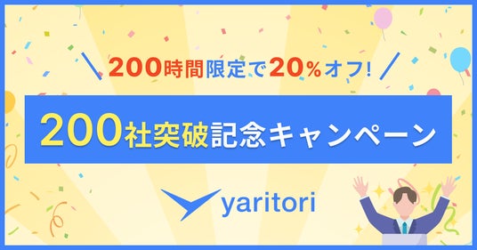 200社突破を記念し、200時間限定で2ヶ月間20%オフでご利用いただける割引キャンペーンを開催します!
