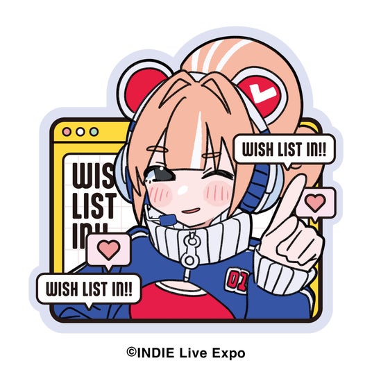 ご来場特典のノベルティとして、オリジナルステッカーを配布いたします。ゲームファンにとって便利で、開発者にとって嬉しい「ウィッシュリスト登録」を、INDIE Live Expo イメージキャラクターの「ウィッシュリストアド美ちゃん」がポップに促すデザインです。