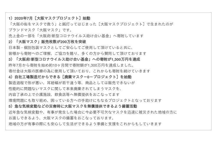弊社としても「大阪の街をマスクで救う~大阪マスクプロジェクト~」と同様に、