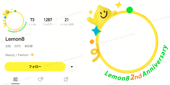 2周年記念イベントの期間中、Lemon8アプリ内で投稿をするだけでマイページのアイコンが限定デザインに変更しちゃう仕掛けも!ぜひ、投稿してアニバーサリー気分を楽しんでください!