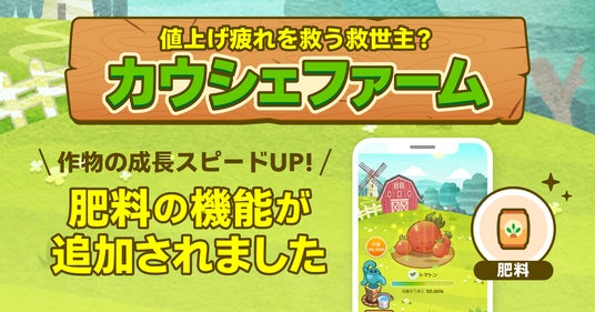 カウシェでは、このような長引く物価上昇による「値上げ疲れ」を感じている消費者に、ゲームで育てた野菜や米などが実際に届く「楽しい節約」という手段を提供したいと、今回「カウシェファーム」の機能をアップデートいたしました。