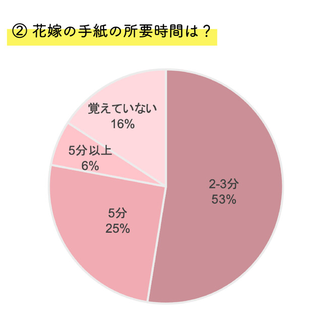 2-3分と回答した方が一番多く、一般的な花嫁の手紙の長さはこれくらいなのだと言える。