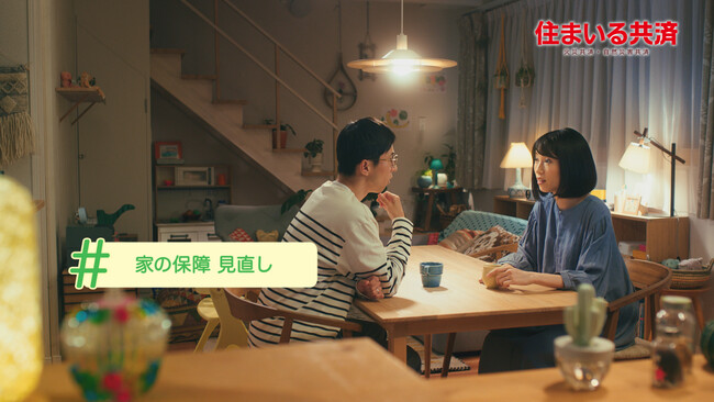 今回のTVCMでは、「家の保障の見直し」をテーマに、住まいの保障「住まいる共済」が持ち家の方にも賃貸の方にもおすすめの手頃な掛金であること、さまざまな自然災害にも適応している充実の保障であることなど、商品の魅力が伝わりやすいように#(ハッシュタグ)で表現しています。
