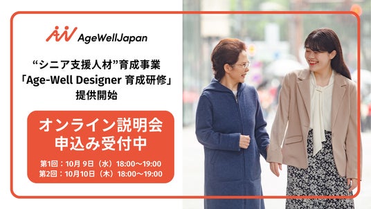 シニア世代向けAge-Wellサービスを提供する株式会社AgeWellJapan(本社:東京都渋谷区 代表取締役社長:赤木円香、以下:AgeWellJapan)は、”シニア支援人材”を育成する企業内研修サービス「Age-Well Designer 育成研修」の提供を開始いたします。また、当研修プログラムは、既にシニアとの接点を多く持つ通信(ソフトバンクほか)・金融(きらぼし銀行ほか)・医療(上田医療センターほか)の各業界における代表企業および行政ですでに導入がされています。今後は医療福祉・小売などの業界の企業でも企業内研修のスタートを予定しており、超高齢社会の到来を背景としてシニア支援人材の重要性はあらゆる業界で高まっていることを受け、2030年までに、当研修プログラムによって全国で3.7万人の「Age-Well Designer」育成を目指します。