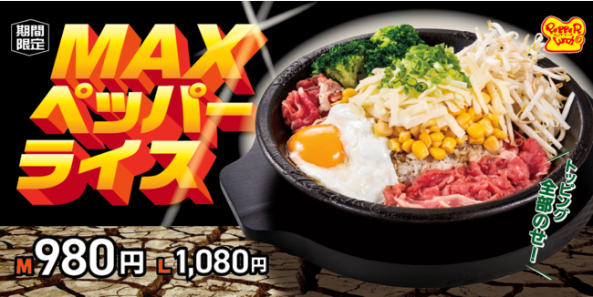 ■商品名:MAXペッパーライス 980円(Mサイズ) / 1,080円 (Lサイズ)