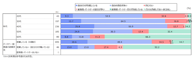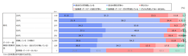 <図6> 配偶者・パートナーとの家事負担について(パートナー・配偶者がいる就労中の女性1,428名の回答)