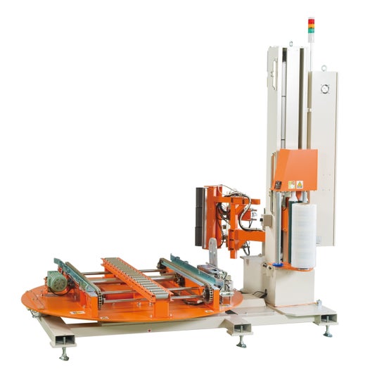 全自動ストレッチ包装機包装物の落下や荷崩れを防ぎ、梱包現場の省力化や省人化に貢献するストレッチ包装機です。