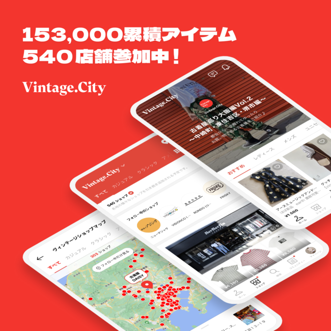 日本全国47都道府県の540店の古着ショップが扱う153,000点にアプリでアクセス可能に