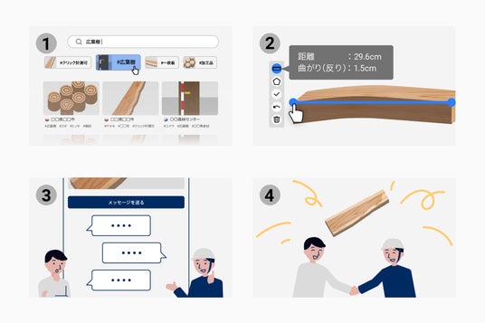 3D木材市場のWebサイトやiOSアプリからSNSを投稿するように簡単に投稿ができます。購入する場合も、無料でアカウントを作成し、出品者の方とコメント欄で手軽に連絡をとることが可能です。