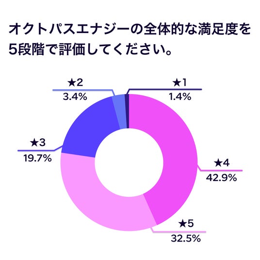 Q4.「オクトパスエナジーの全体的な満足度を5段階で評価してください」に対し、75.4%が4以上(42.9%=4、32.5%=5) と回答しました。