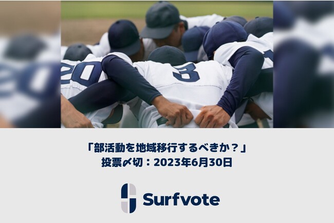 SNSとテクノロジーで社会課題の発見・解決をサポートするICTスタートアップのPolimill株式会社(ポリミル、本社:東京都港区、代表取締役:横田えり、以下Polimill社)は新イシュー「部活動を地域移行するべきか?」について、当社が運営するSurfvoteでユーザーの意見投票を開始しました。