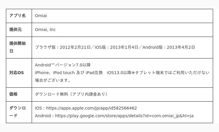 英語社名:Omiai, Inc.