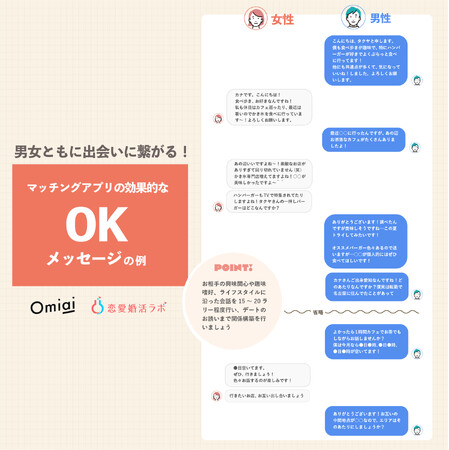 また、今回の調査でメッセージを重視する傾向があると分かったため、男女ともにぜひ参考にしていただきたい「出会いに繋がりやすいマッチングアプリにおける効果的なOKメッセージ」について解説します。