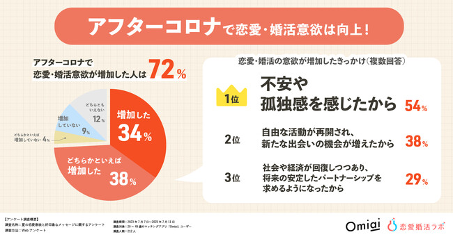 アフターコロナで恋愛・婚活意欲が増加した人は72%