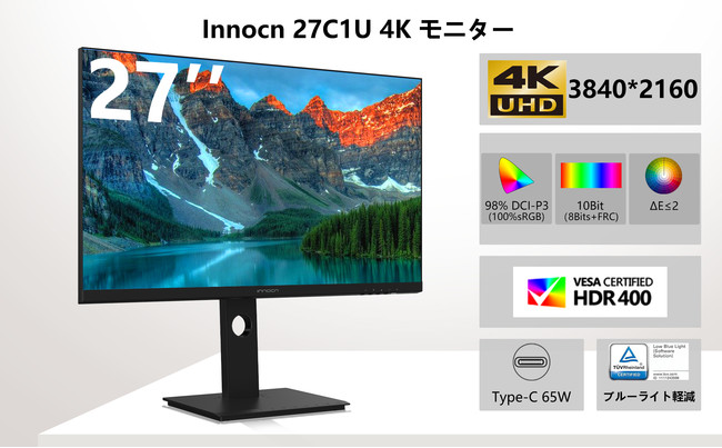 Innocn 27C1U 4K 27インチモニター Macbook一本接続!「Tpye-C一本接続Thunderbolt 3以上対応します」