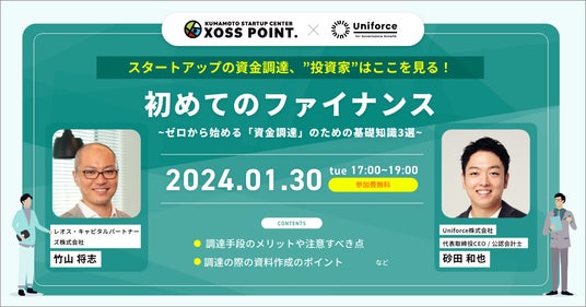 企業フェーズに合わせて持続的な成長の基盤を構築する「ガバナンスグロース」を企業ミッションに掲げ、「ITxコンサルティング」の力でDXを推進するテックカンパニーであるUniforce株式会社(代表取締役CEO:砂田 和也、以下「当社」)が、かねてよりIPO支援を行っていた熊本のインキュベータ施設「XOSS POINT.」にて、スタートアップ向けのハイブリッドセミナーおよび交流会を実施いたします。