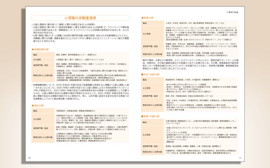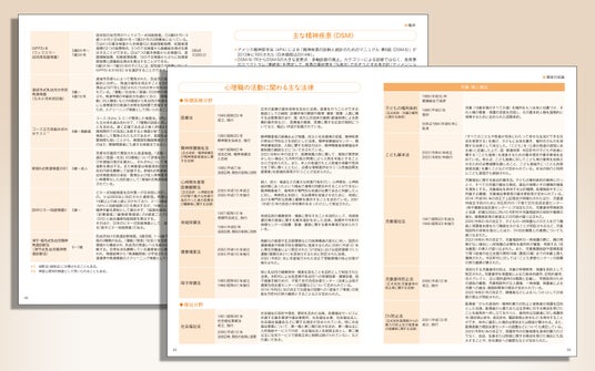 心理学の各領域の基礎知識から心理職の活動に関わる法律・資格・施設まで、大量の情報を2色刷で見やすく整理した大充実の100ページ。