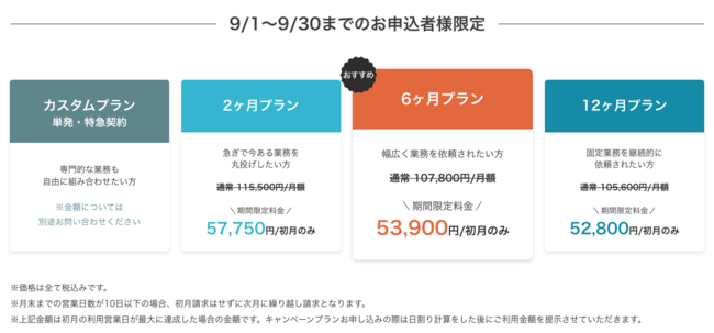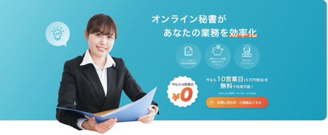 9月1日(木)~9月30日(水)までのお申込者様限定で、今なら優秀な秘書を10営業日/タスク上限なし0円でご利用頂けます。