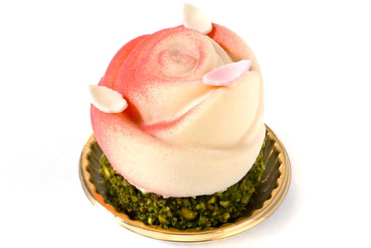 季節ごとにテーマを変えて登場するローズホテル横浜のシグネチャーケーキ「ザ・ローズ」。2025年1・2月は、新年のおめでたさをイメージし、紅白のグラデーションでご用意いたします。バラの形をした苺ムースの中には、マスカルポーネのムースに苺ジュレを忍ばせ、土台は「春を待ちわびる草花の芽吹き」をイメージし、ダコワーズの生地にミルクチョコレートをコーティングしピスタチオをまぶしました。春が待ち遠しくなる期間限定のスイーツを、どうぞお楽しみください。