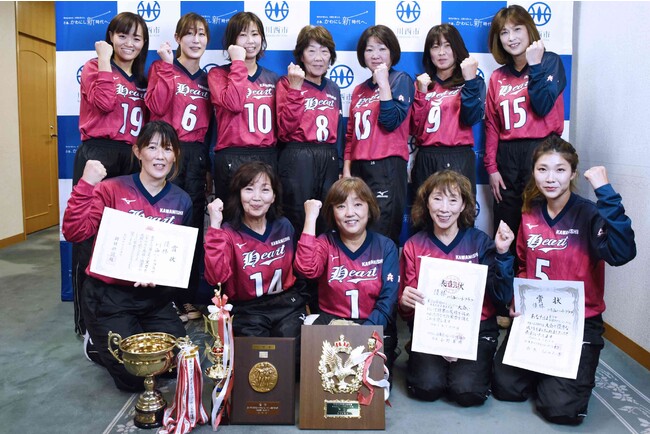 キャプテンの片岡 真由美さん(かたおか まゆみ)は「川西ハートクラブはつなぐバレーをモットーにしています。チーム一丸となり、全国大会で良い結果が出せるよう頑張りたい。」などと話していた。