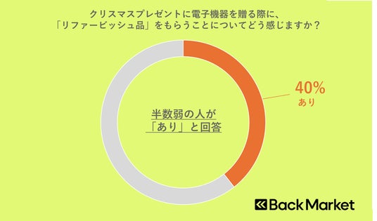 - プレゼントをもらう側は中古品・リファービッシュ品に前向きで、約4割が肯定的
