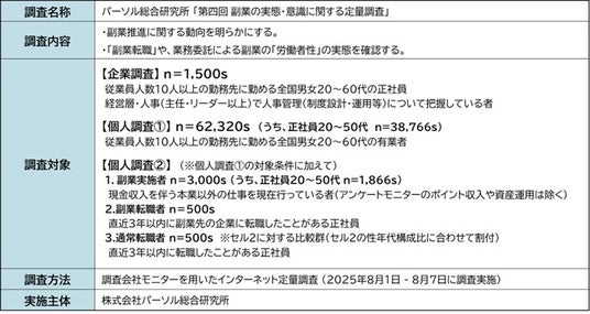 本調査は、副業の現状を多角的に把握し、経営・人事が直面する課題解決と持続可能なキャリア形成に資する知見を提供することを目的に実施しました。