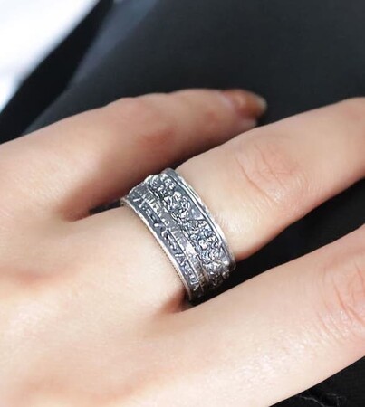 裏側の文字も細かく、細部まで作りこまれています。シンプルにかっこいい、存在感抜群のリングに仕上がりました。