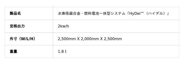 水素吸蔵合金・燃料電池一体型システム「HyDel」