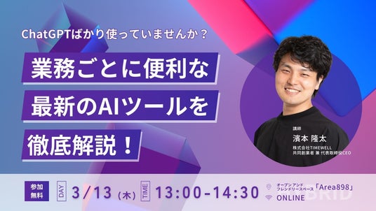 株式会社TIMEWELL(本社:神奈川県横浜市、代表取締役:濱本隆太、以下TIMEWELL)は、埼玉県横瀬町(町長:富田 能成)が実施する官民連携プラットフォーム「よこらぼ」で、資料調査、文書作成、スライド作成など業務ごとに便利な最新のAIツールを徹底解説するセミナーを開催します。