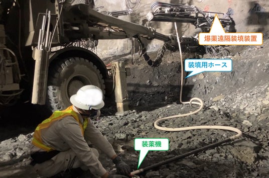 装薬孔内が崩れた場合でも対応可能な爆薬遠隔装填装置を開発