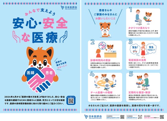 この改革を進めるためには医師や医療機関の意識改革ばかりでなく、国民の皆さんの理解と協力が不可欠となることから、日本医師会ではこのたび、啓発動画「教えて!日医君!大切です!医師の働き方改革」を制作し、5月8日から日本医師会公式YouTubeチャンネルで公開しています。