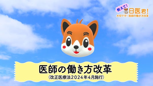 動画では、日本医師会の公式キャラクターである日医君(声はSPY×FAMILYでダミアン・デスモンドの声も担当している声優の藤原夏海さん)がまず、なぜ、今、医師の働き方が必要であるのかを説明。その上で、国民の皆さんができることの例として、