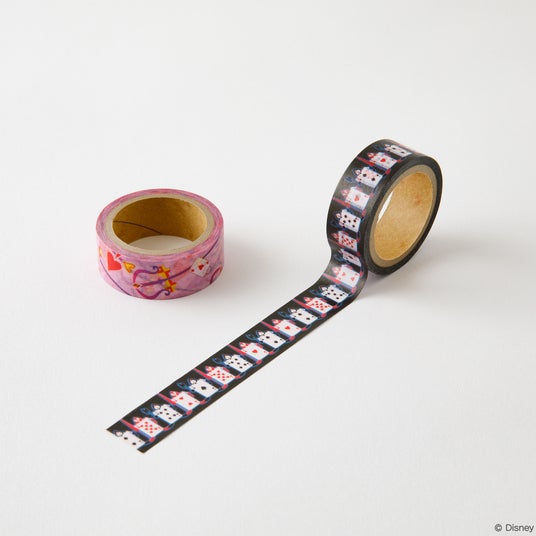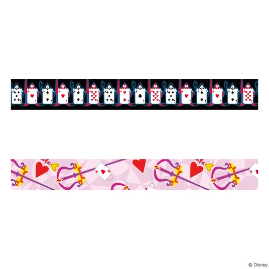 整然と並ぶトランプ兵柄とキーブレード「ラストリゾート」柄のマスキングテープ2種セットです。ノートのデコレーションやラッピングに活躍します。