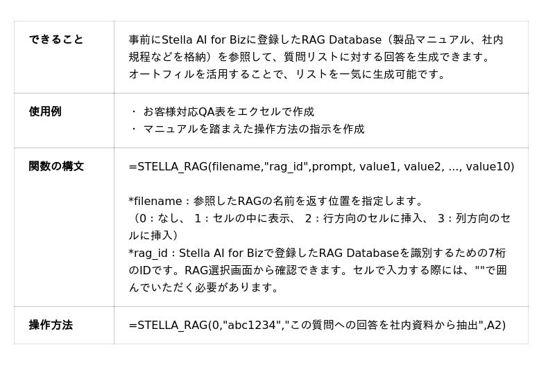 2. STELLA_RAG関数(法人のみ対象)