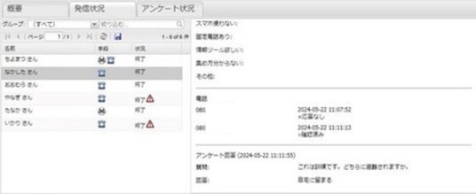職員本人と家族の安全確認、自宅の被害状況、職場までの参集時間をメールや電話、ビジネスチャットで確認し、初動対応体制を構築します。