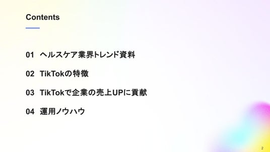 株式会社マイム(本社:東京都品川区、代表取締役社長:古川 湧一、以下「当社」)は、ヘルスケア業界の皆様を対象に「2025年版TikTokトレンドレポート」を公開いたしました。本レポートは、TikTokを活用した最先端のプロモーション事例や成功パターン、そして結果に直結する戦略的な運用ノウハウを一冊に集約。